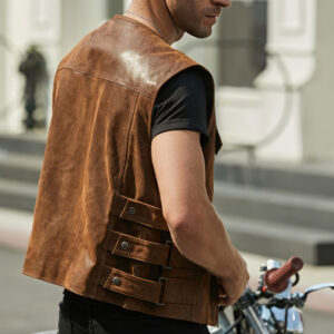 Men’s Western Slim Fit Vintage Leather Waistcoat