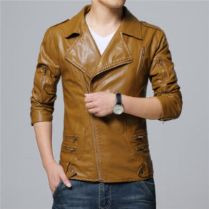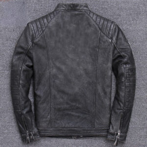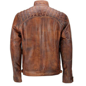 Men’s Crossover Quilted Shoulders Biker Leather Jacket