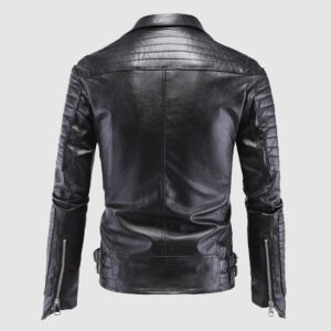 Biker Black Quilted Shoulder Autumn Winter Leather Jacket